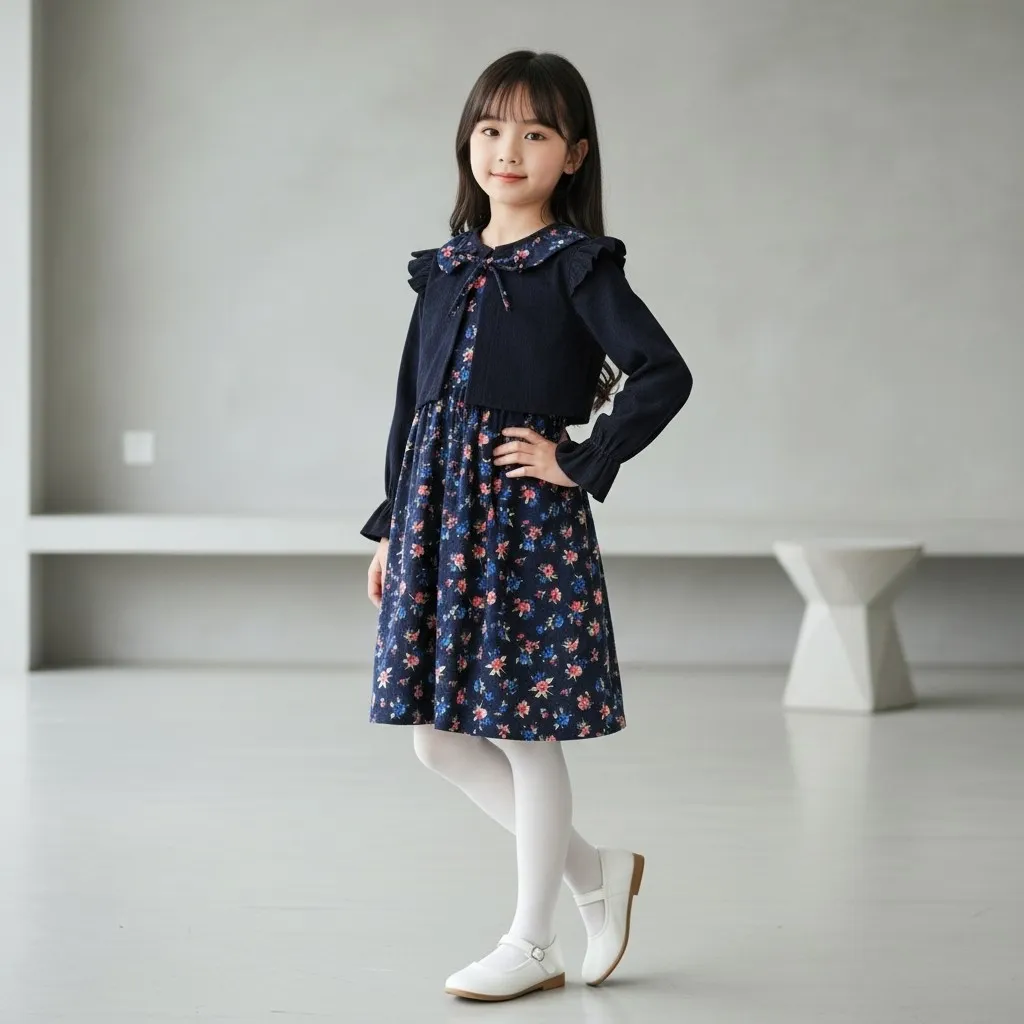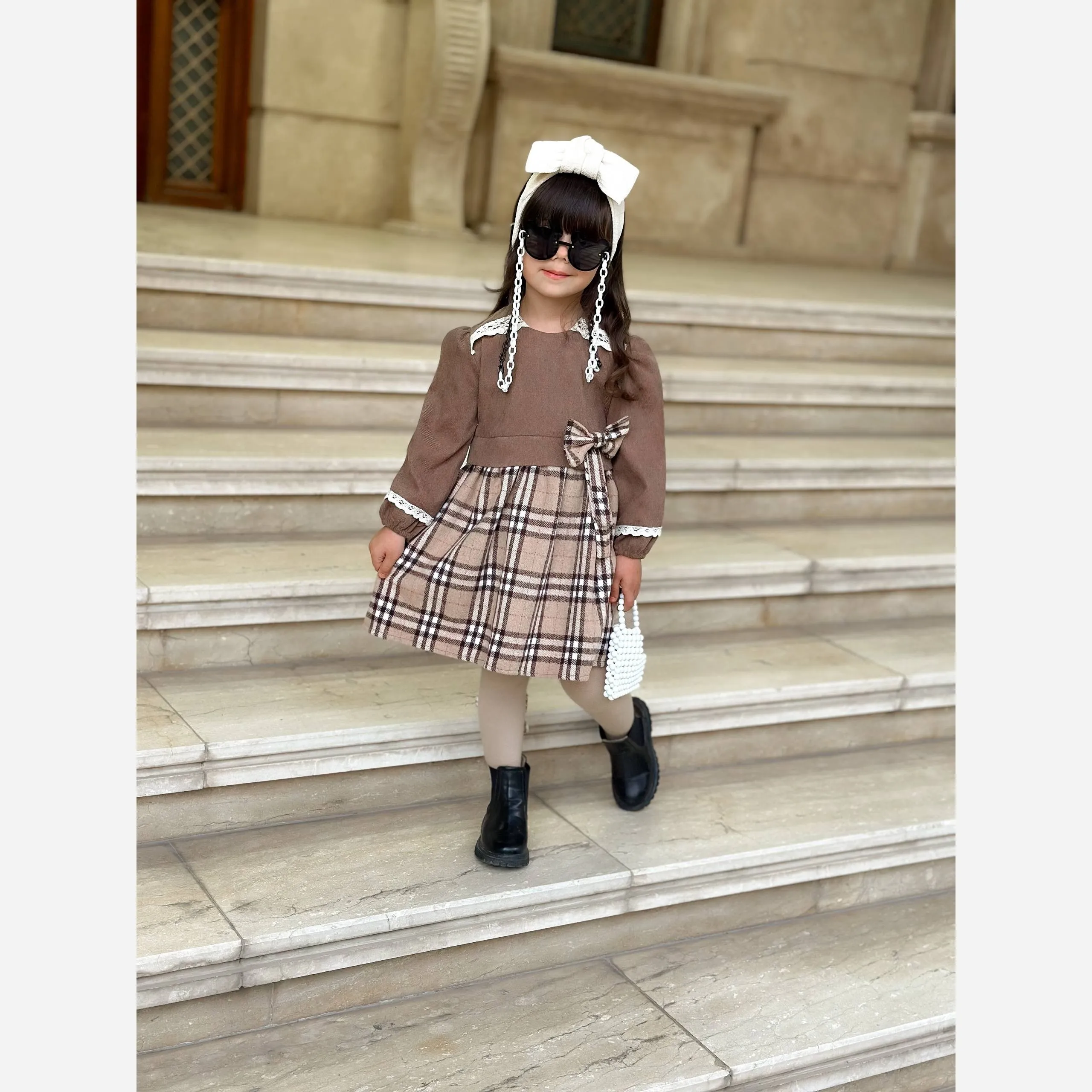 پیراهن دخترانه مجلسی لش دورس پاییزه بچگانه همراه پاپیون سایز 40 تا 55