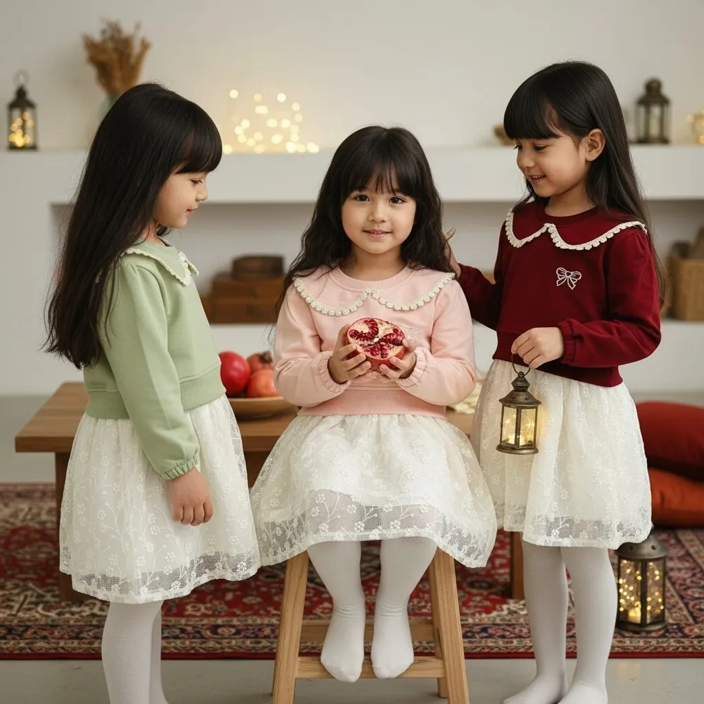 ست بلوز دامن دخترانه عیدانه 2 تا 13 سال | پارچه پنبه و مخمل آنجل | دوخت مزونی