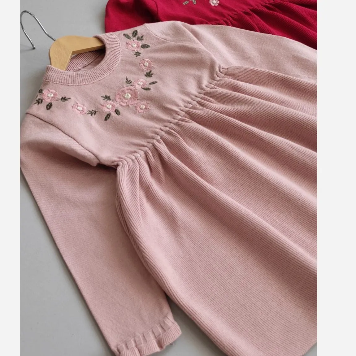 ناموجودپیراهن دخترانه مجلسی مخمل کبریتی یقه گلدوزی شده آستین پرنسسی همراه کیف هدیه 2 تا 9 سال