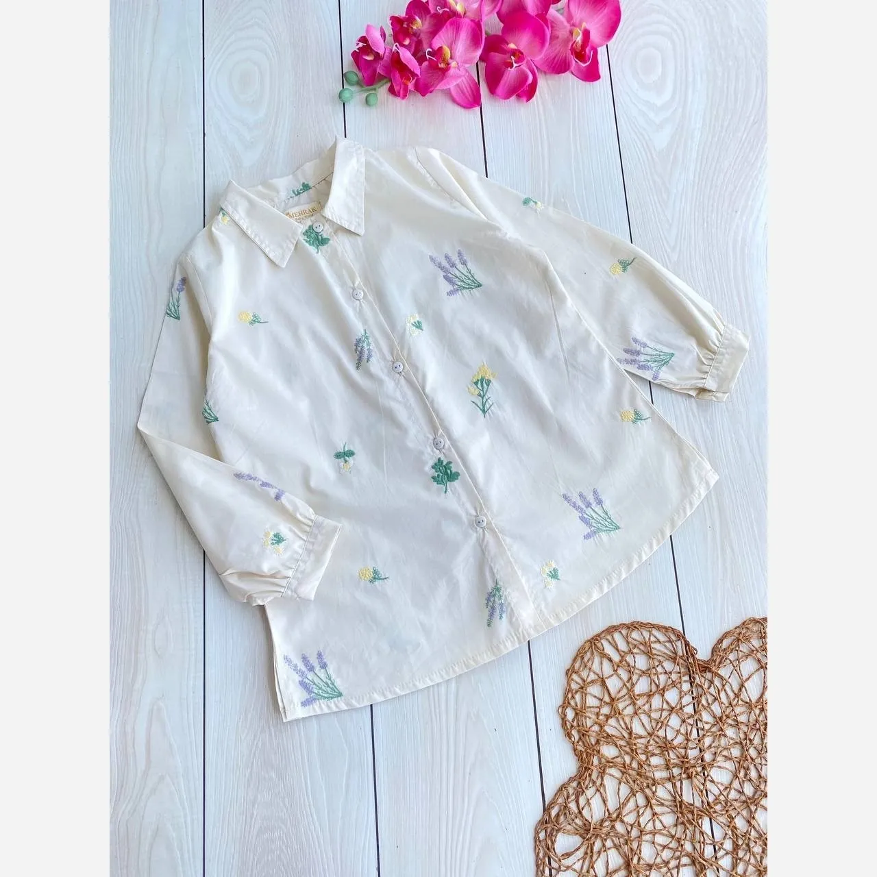 شومیز دخترانه پوپلین با گلدوزی تک رنگ تینیجری