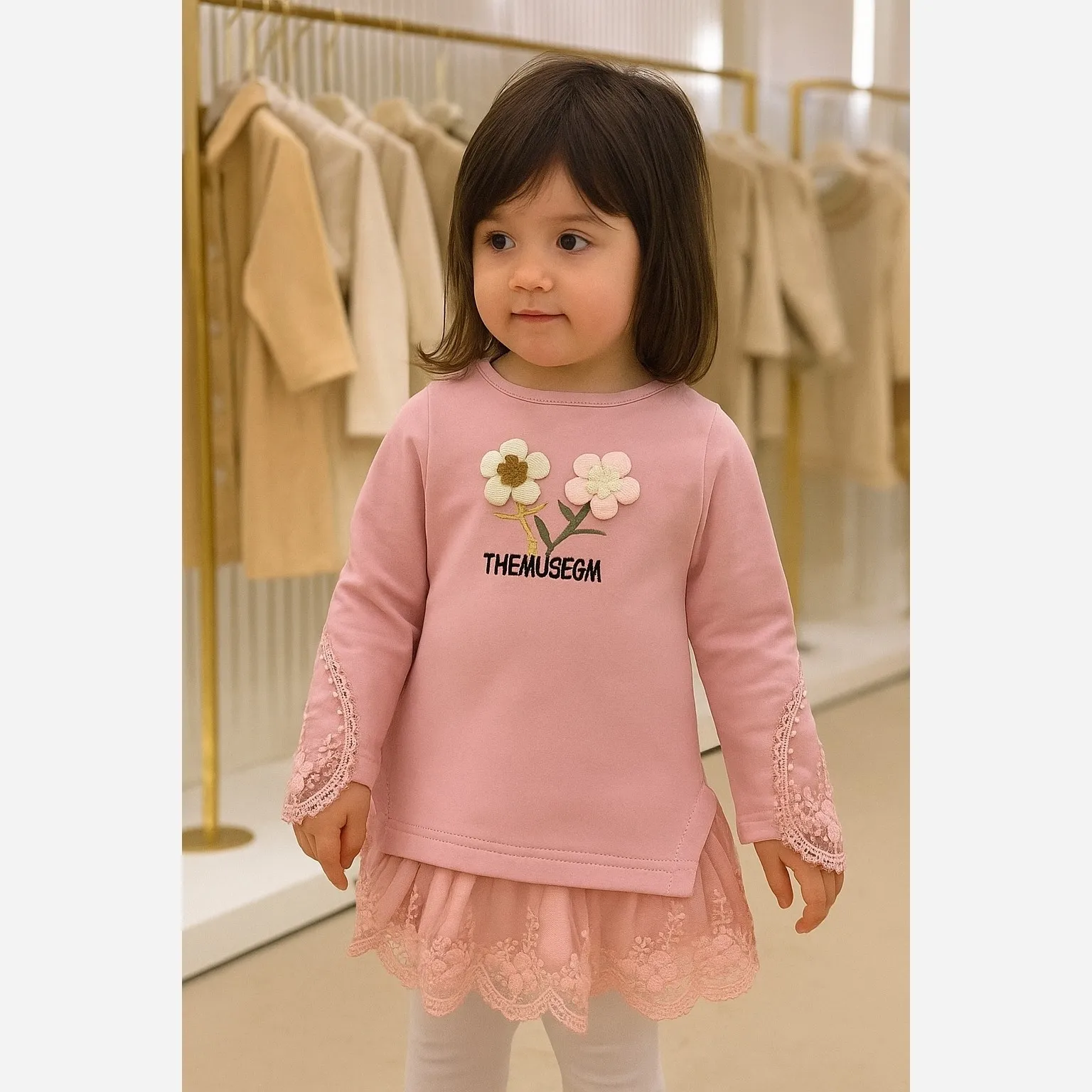 بلوز دخترانه عیدانه گلدوزی دورس پنبه 2 تا 8 سال