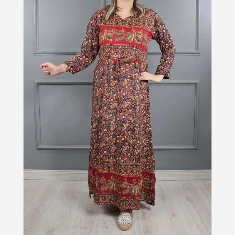 پیراهن هندی نخی سنگشور فری سایز زنانه تا سایز 48 خنک و سبک چهارفصل