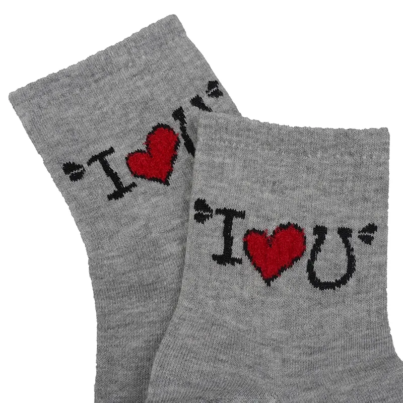 جوراب نیم ساق زنانه پنبه بوکله طرح I Love You