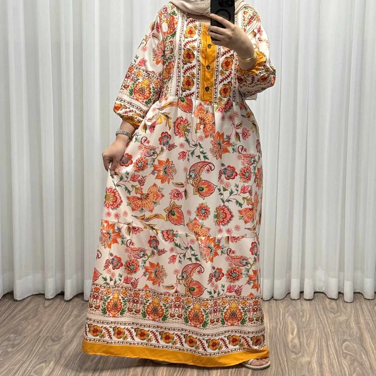 این پیراهن با طراحی شیک و راحت، مناسب برای خانمها و دختران در تمام فصول سال است. جنس فلور بوگاتی با کیفیت، لطافت و خنکی بینظیری را برای شما به ارمغان میآورد و به هیچ عنوان نازک نیست و بدننما نمیباشد. 🍃