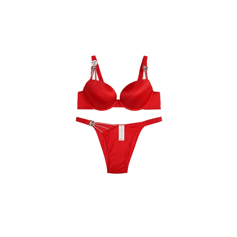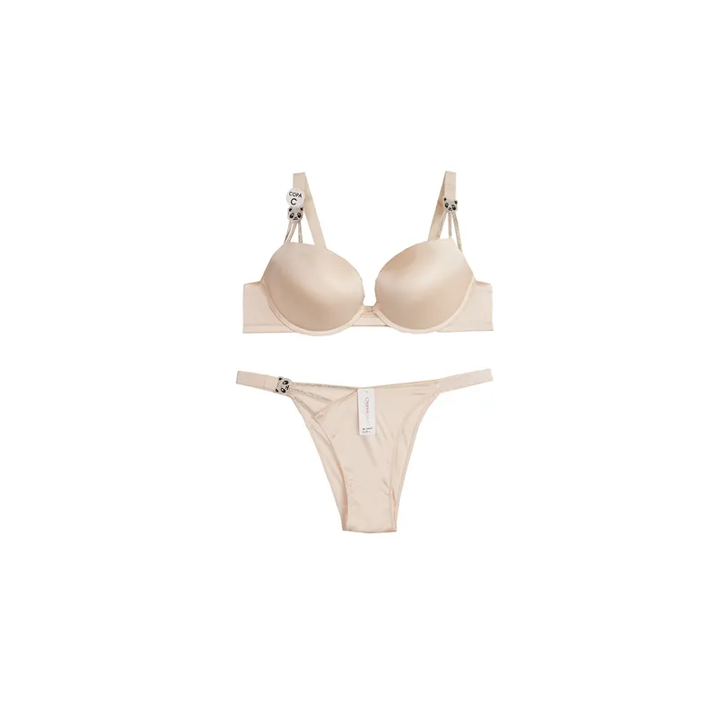 ست شورت و سوتین اسفنجی فنردار طرح پاندای نگینی برند Chanvie Leen کاپ C