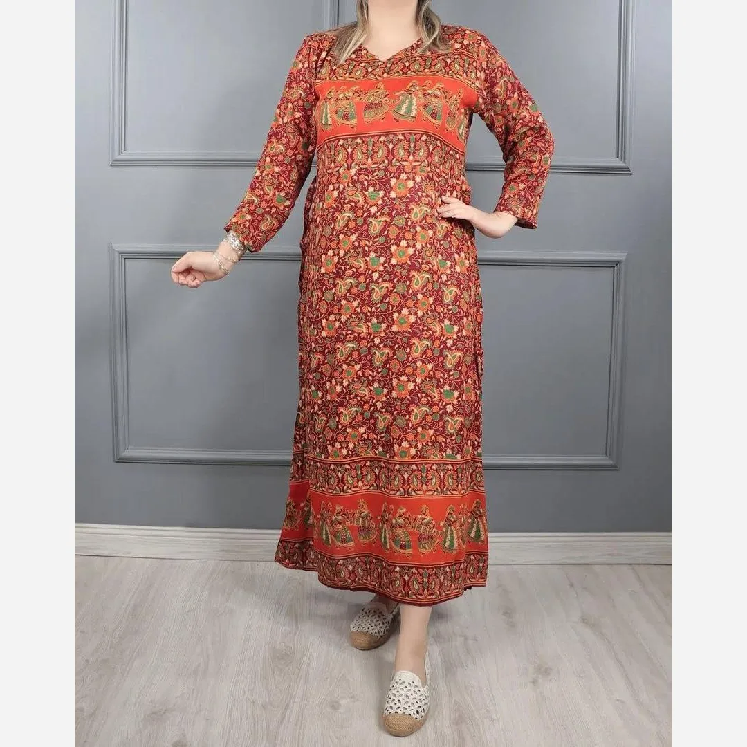 پیراهن هندی نخی سنگشور فری سایز زنانه تا سایز 48 خنک و سبک چهارفصل