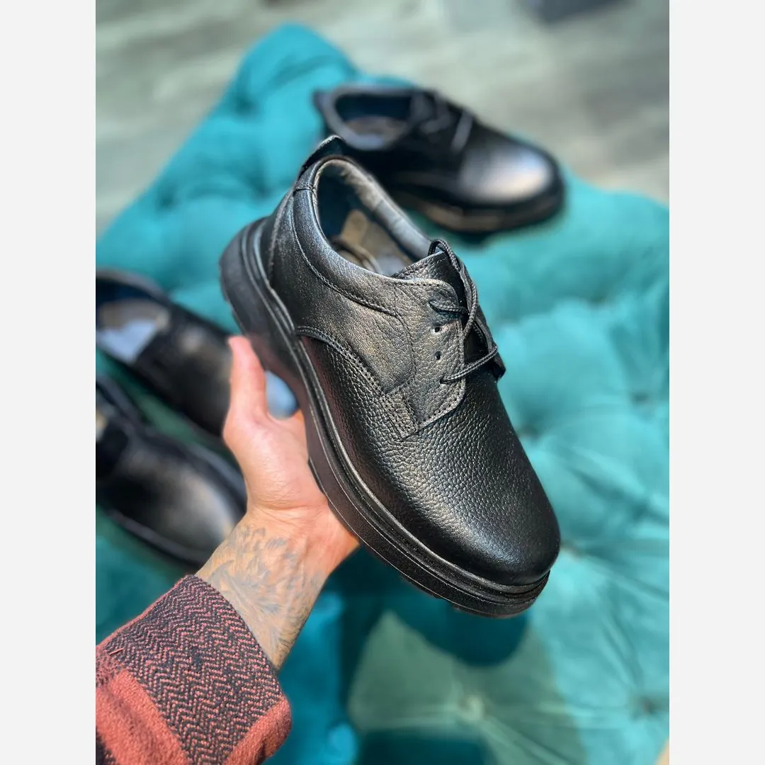 * **رویه از چرم گاوی اعلا:** لطافت و دوام چرم طبیعی، زیبایی و استحکام این کفش را تضمین میکند.