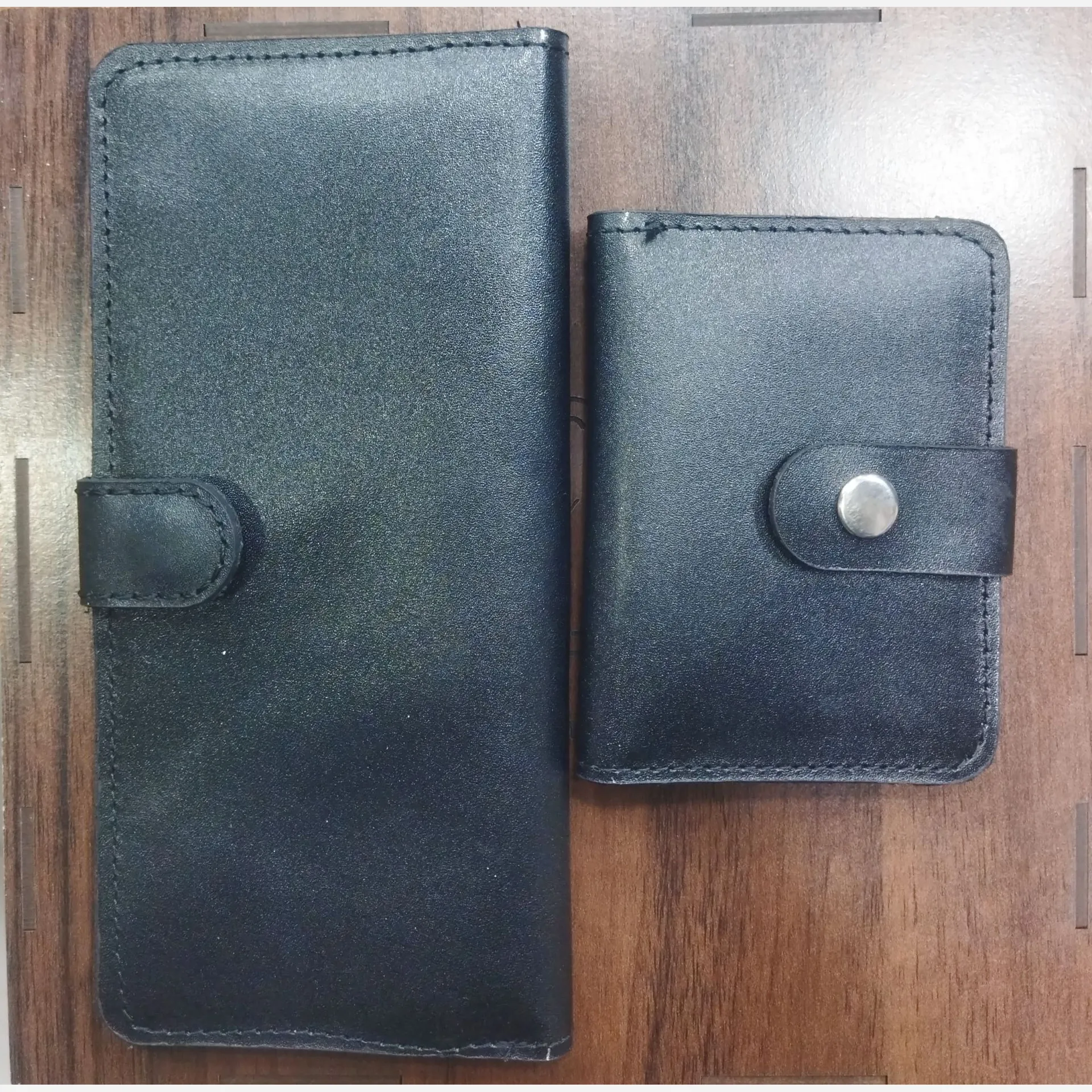 ست سه تیکه چرم طبیعی مردانه کمربند کیف کتی جاکارتی با جعبه چوبی