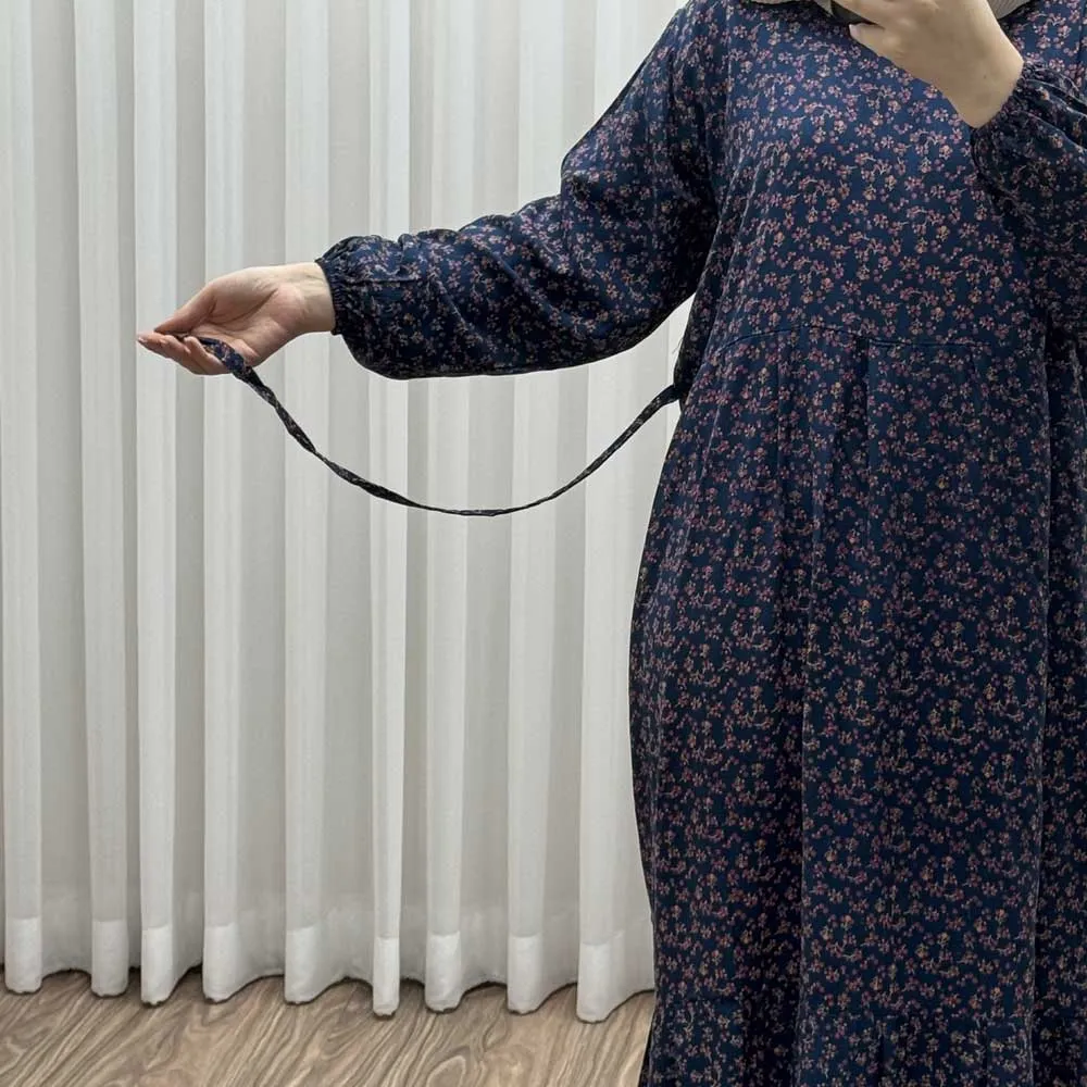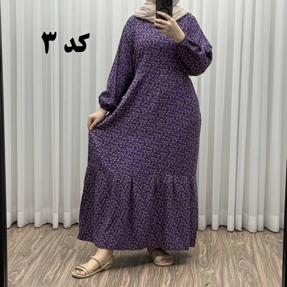 پیراهن گلریز چیندار آیدایی پاموق کد 1522 جنس نخی شسته شده فری سایز تا 50 کمربنددار چهارفصل