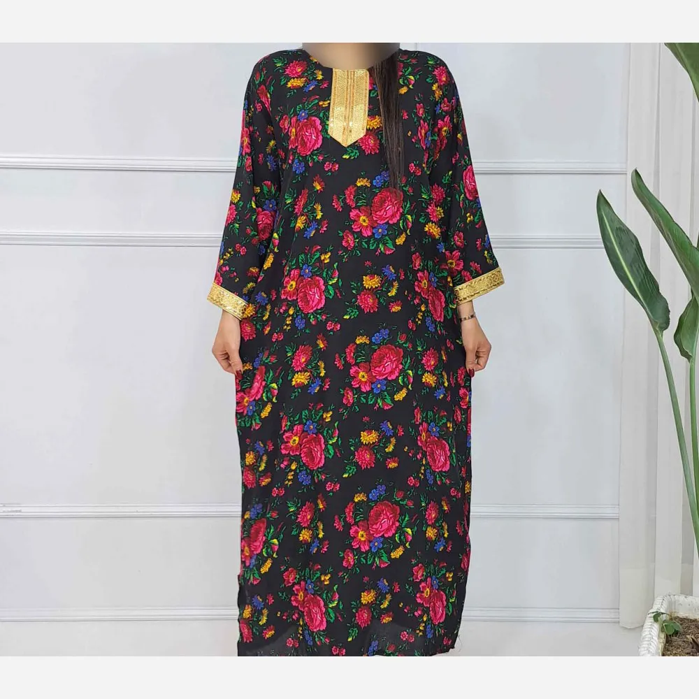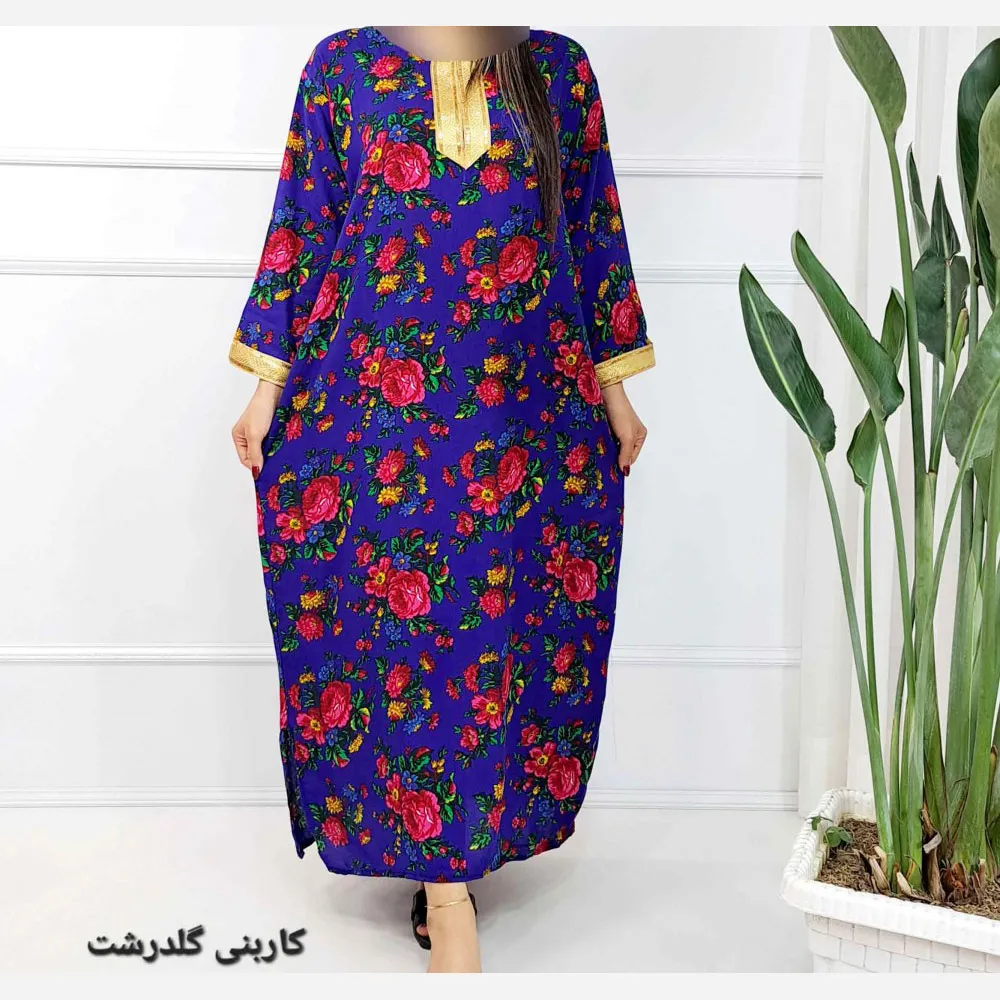با این پیراهن زیبا، استایلی خاص و راحت را تجربه کنید! طراحی منحصر به فرد با گلهای درشت و جزئیات طلاکوب، جلوهای چشمنواز به شما میبخشد. 💫