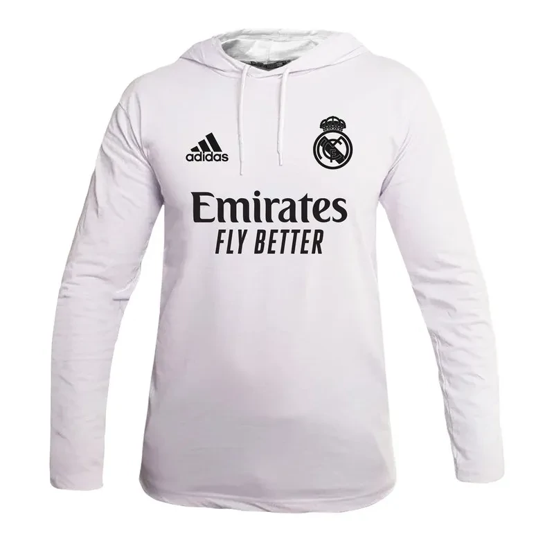 خرید این تیشرت آستین بلند کلاهدار طرح رئال مادرید، تجربه ای لذت بخش از پوشاک با کیفیت و مطابق با سلیقه هواداران فوتبال را برای شما به ارمغان می آورد.