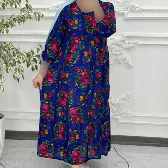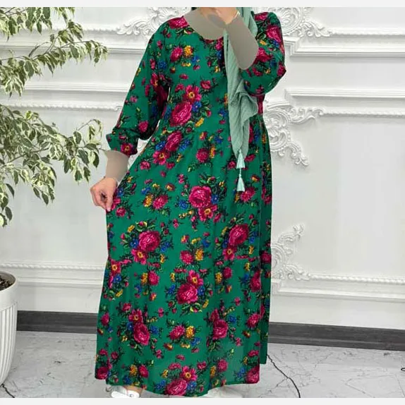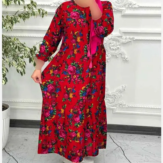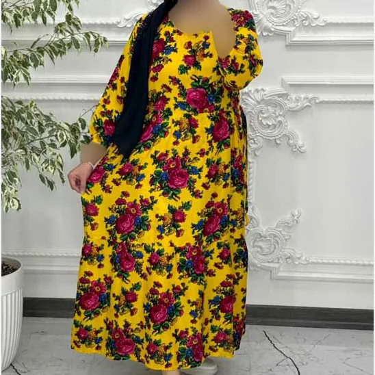 پیراهن ساحلی زنانه نخی گل درشت فری سایز تا 48 کمربنددار چهارفصل شیک راحت