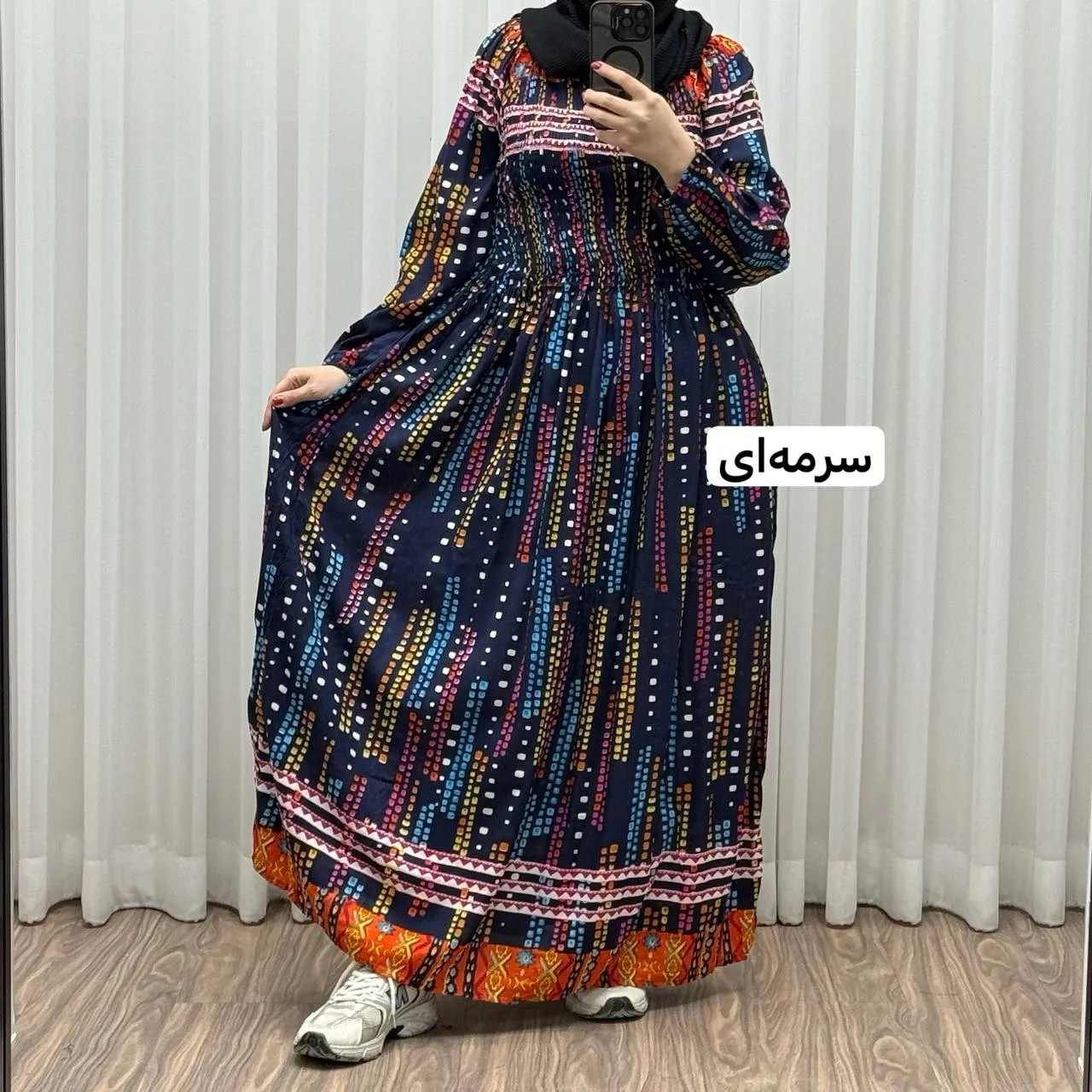 پیراهن ساحلی آستین دار هندی اطلس فری سایز تا 52 کریشه چهارفصل شیک و راحت بدون بدن نما