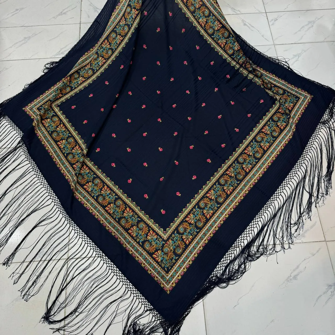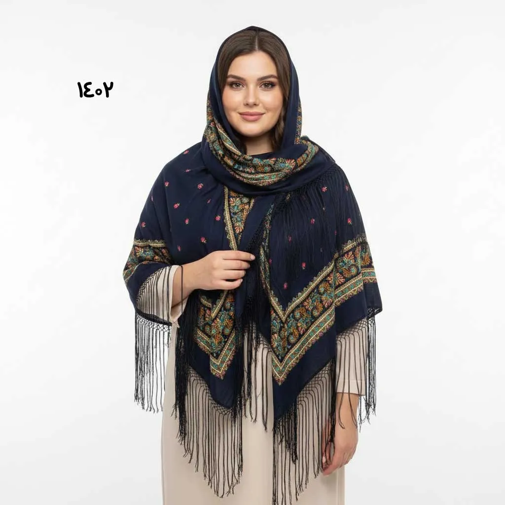 * **ریشه دستباف:** جلوهای خاص و هنرمندانه به این روسری میبخشد. 🧶