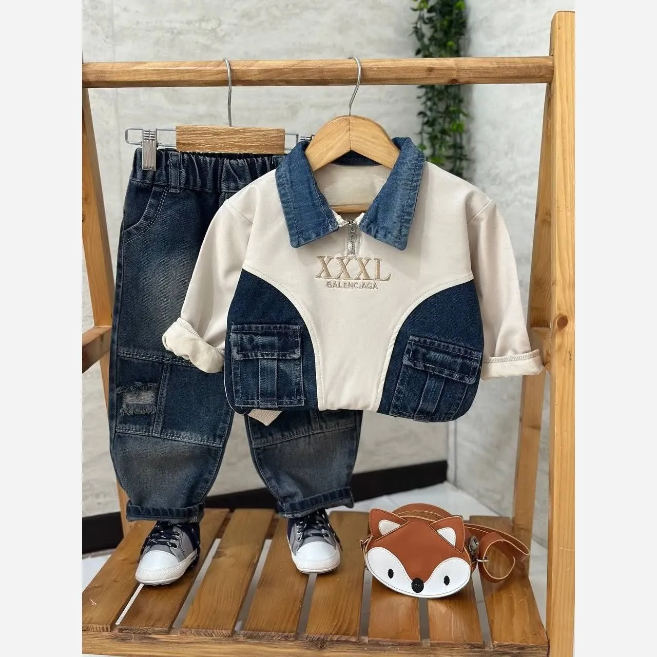 ست بلوز تکهدوزی جین + شلوار جین گرم بالا بچگانه 🌟