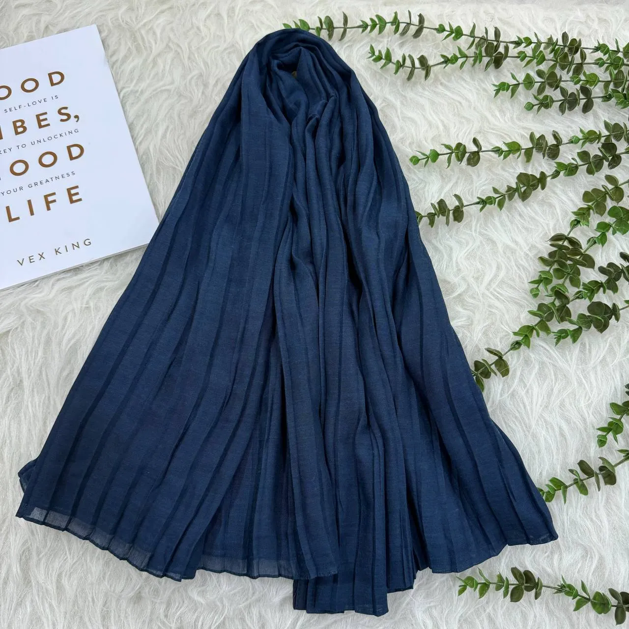 شال پلیسه نخی ساده زنانه قواره بزرگ 200×80 سانتیمتر بدون آبرفت و چروک