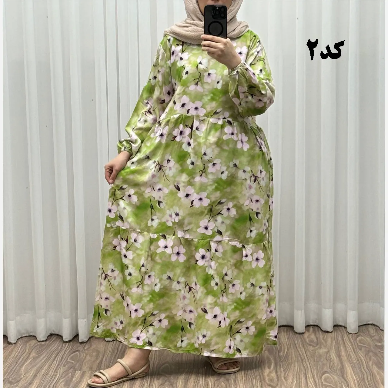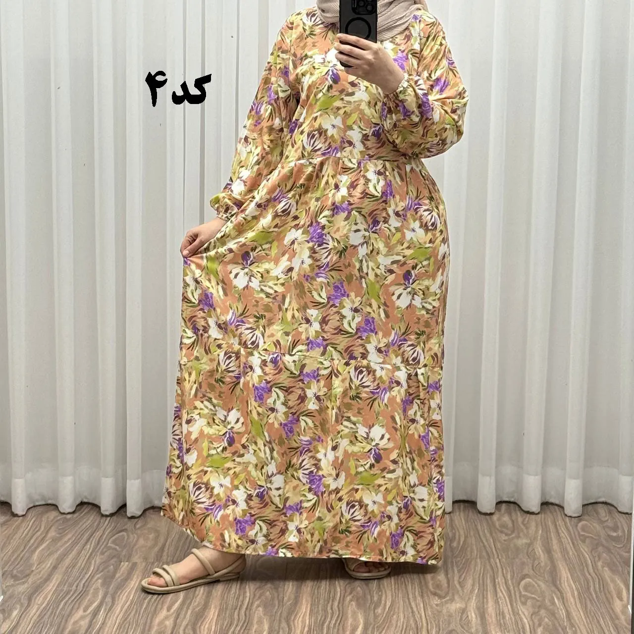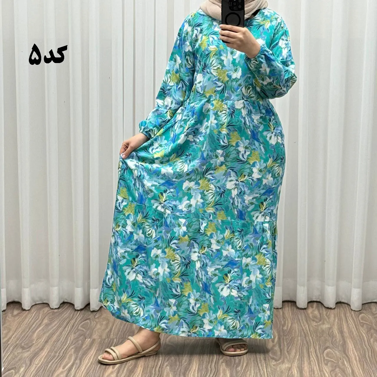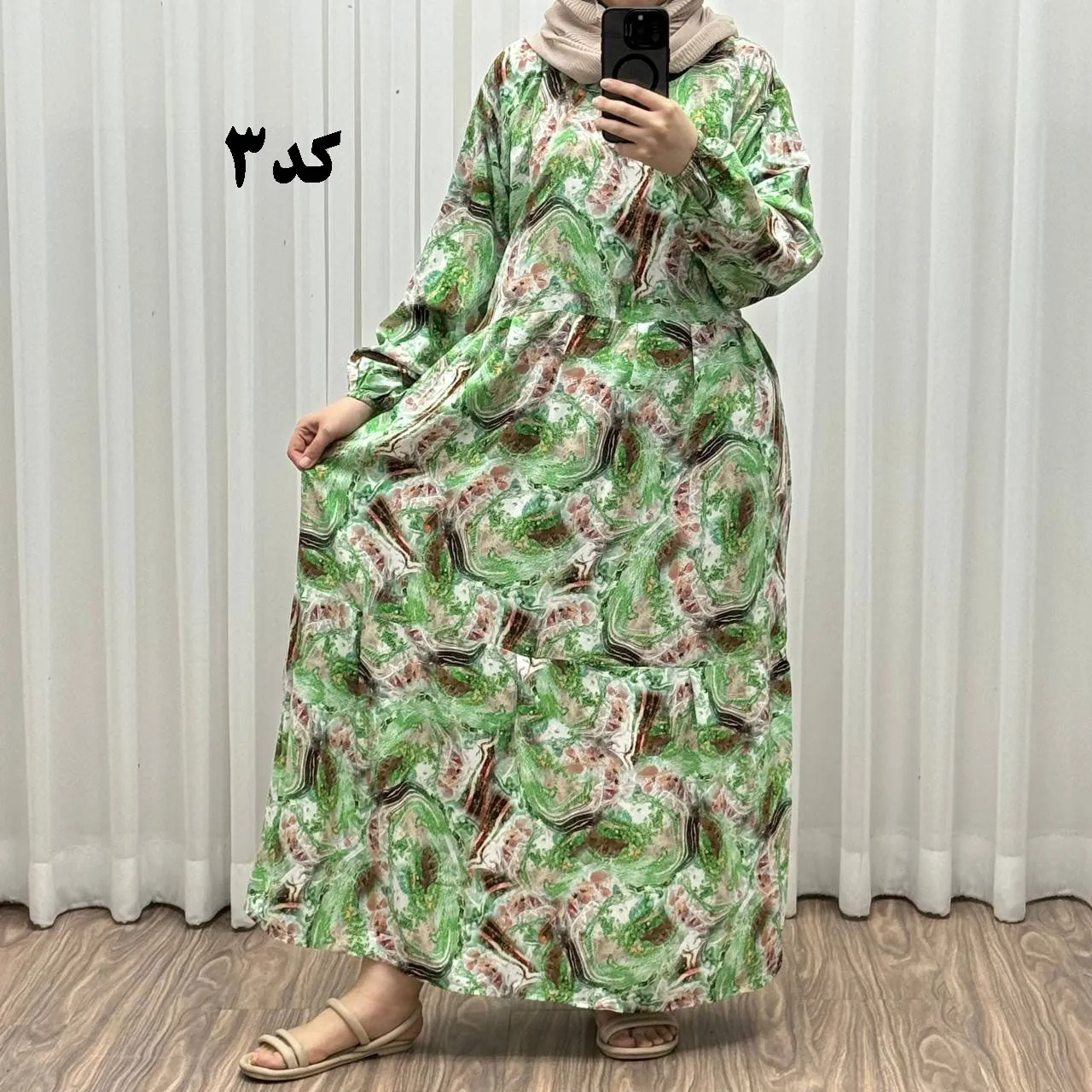 پیراهن نخی خارجی مدل هیوا فری سایز مناسب تا سایز 50 چهارفصل شیک راحت با بند کمر و کمربند بدون دکمه جلو بدون سایه انداختن