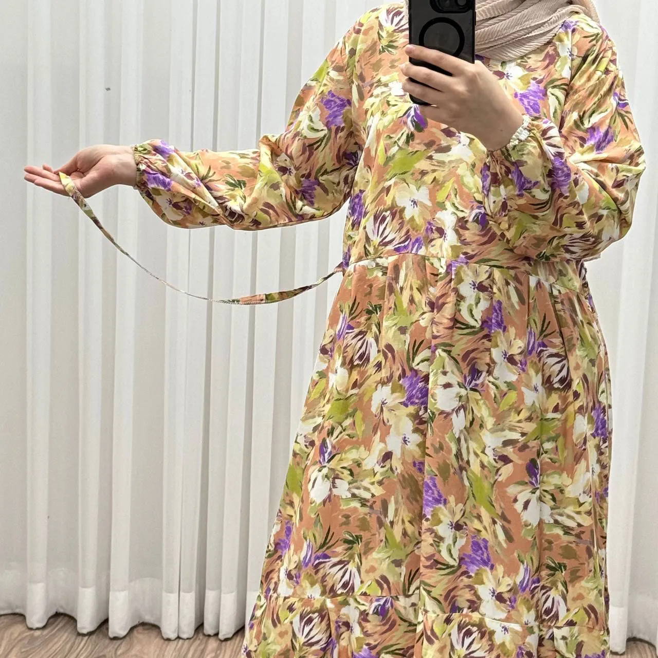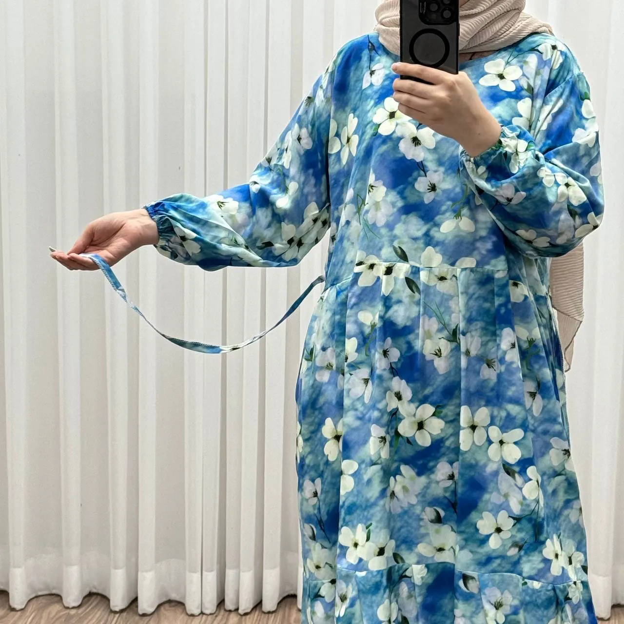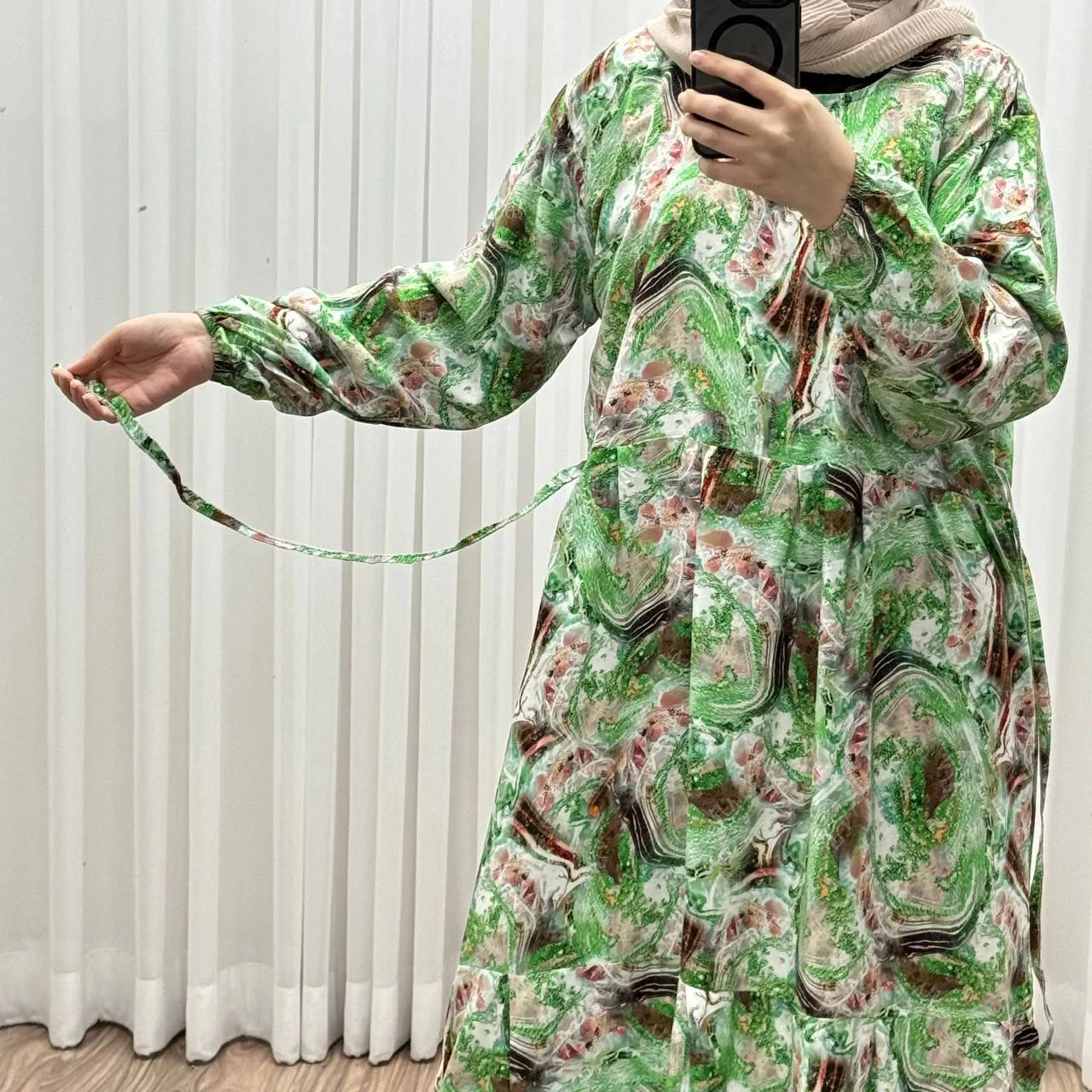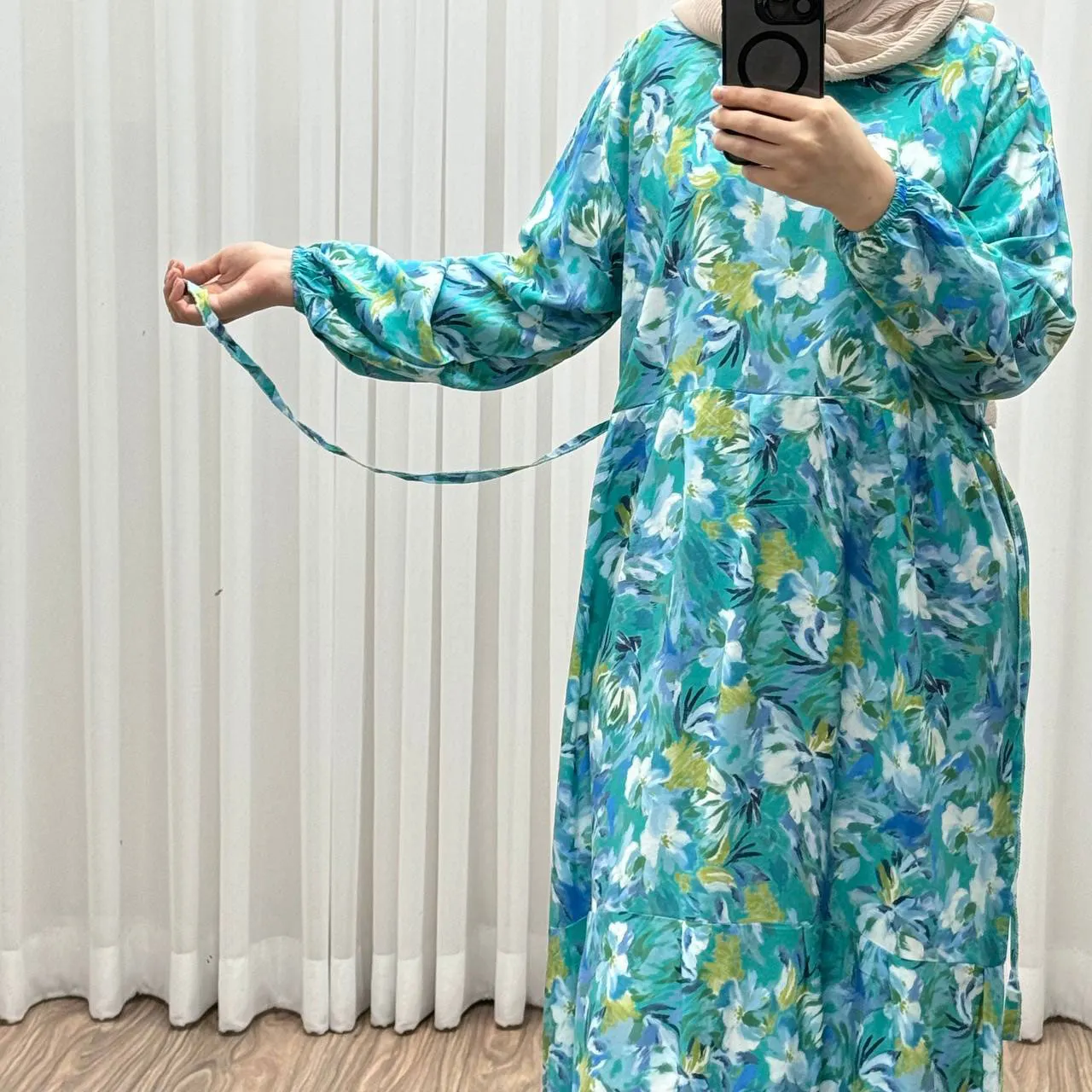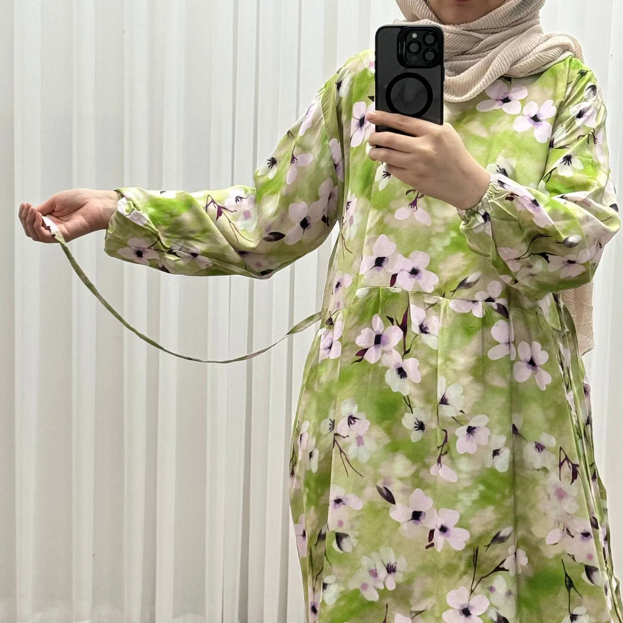 پیراهن نخی خارجی مدل هیوا فری سایز مناسب تا سایز 50 چهارفصل شیک راحت با بند کمر و کمربند بدون دکمه جلو بدون سایه انداختن
