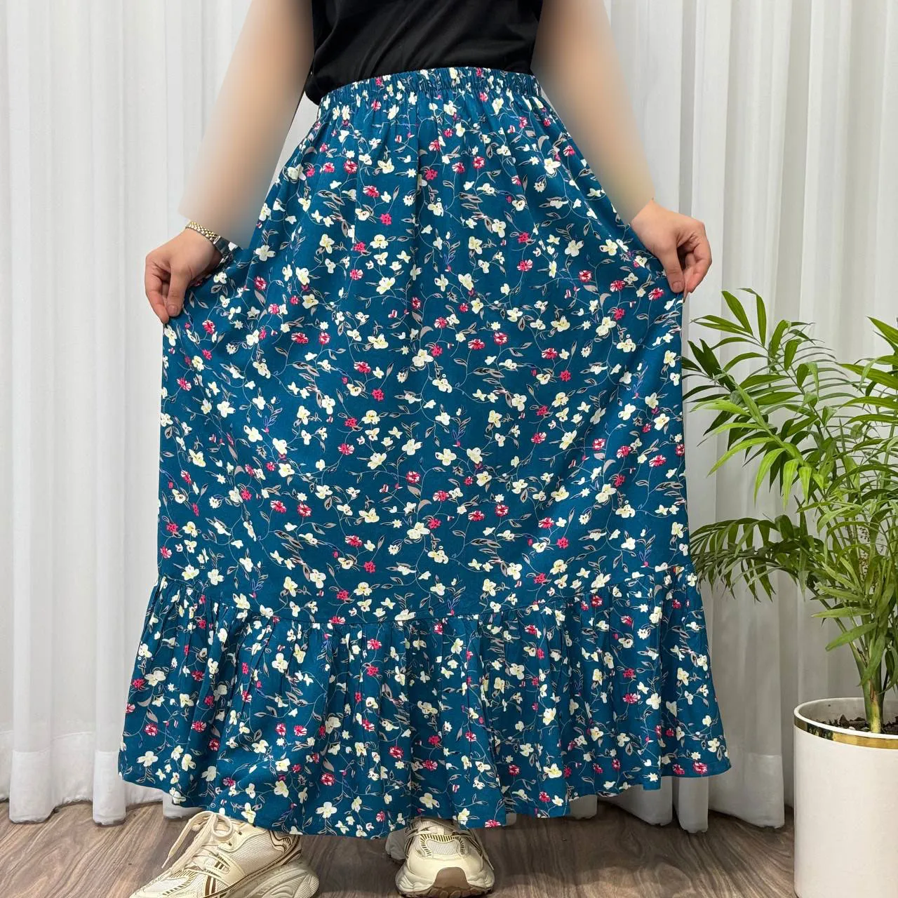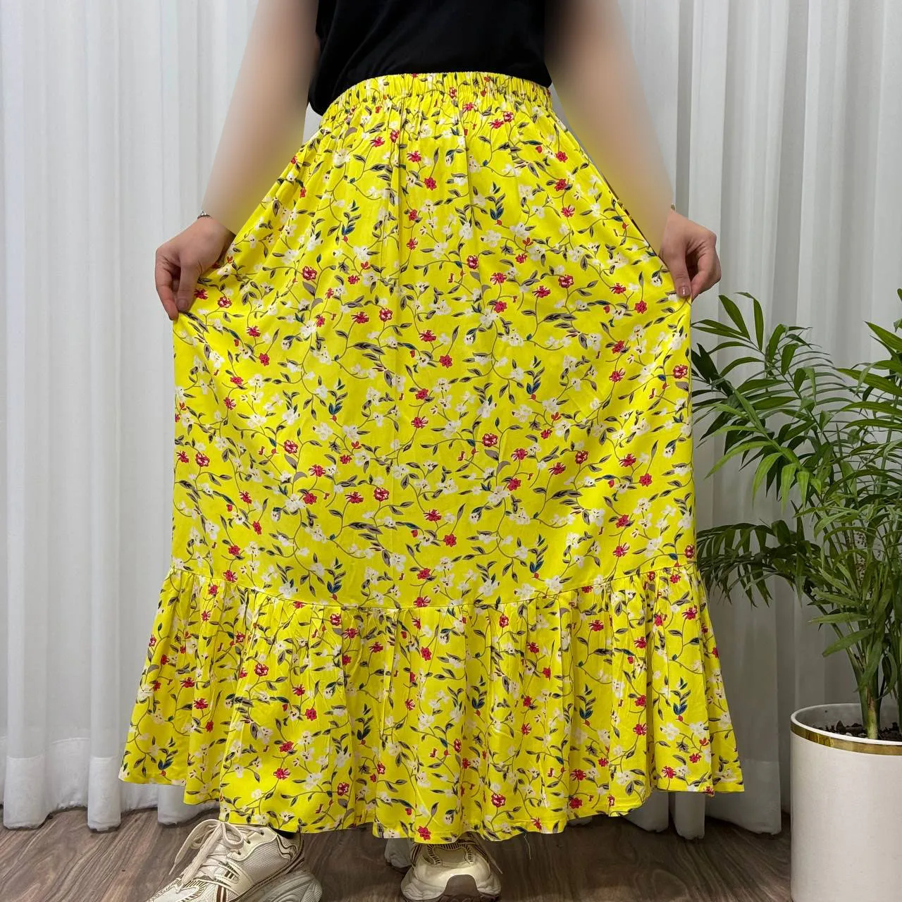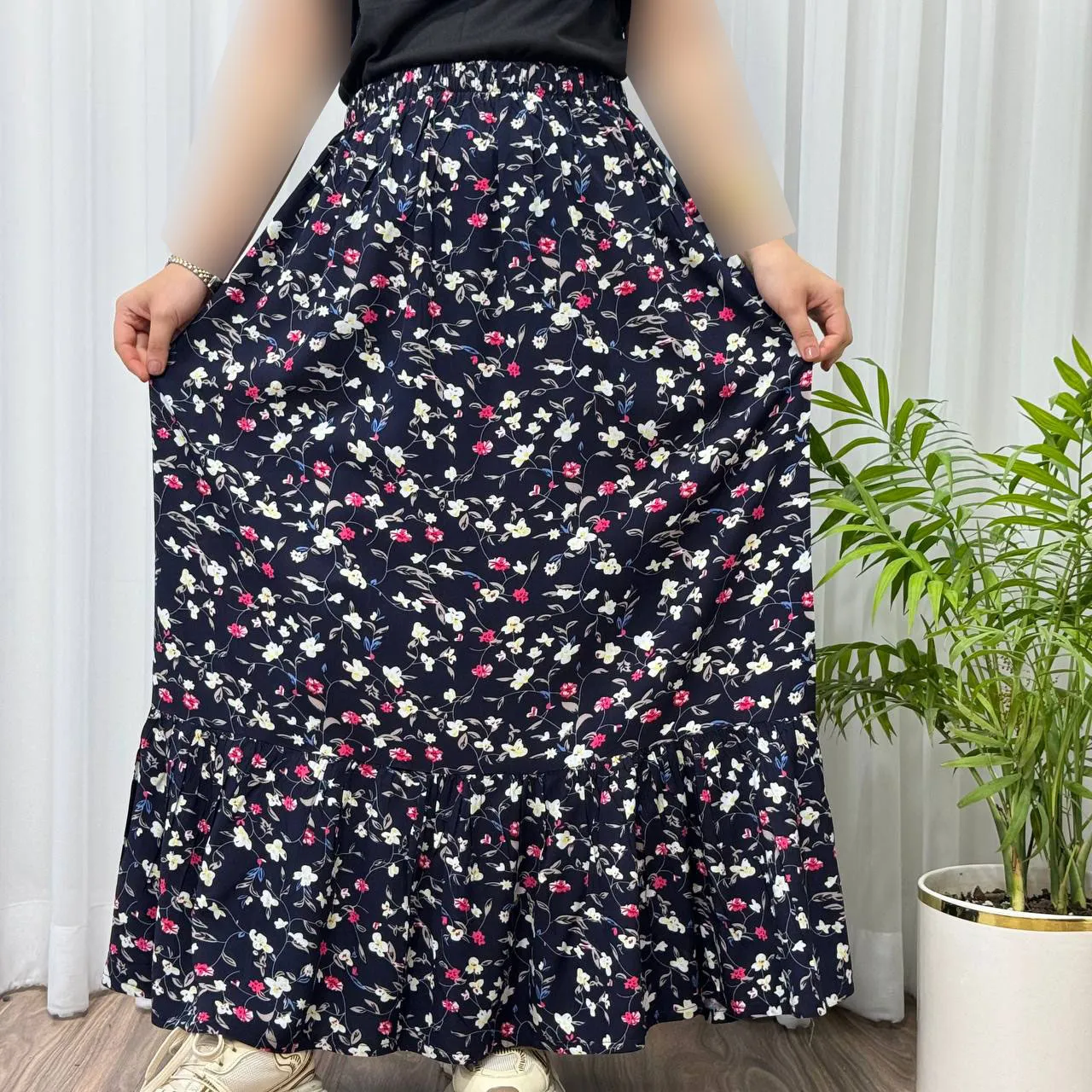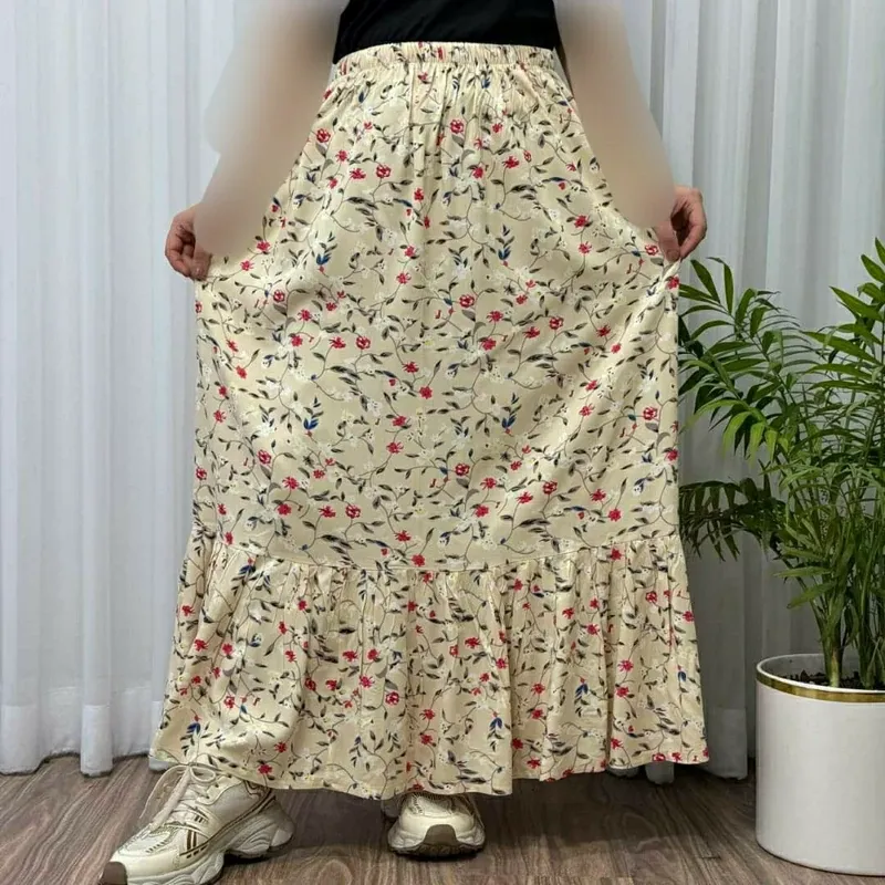 دامن زنانه بلند نخی خارجی فری سایز تا 48 آبرفت تا 5 سانت سایه نمیاندازد