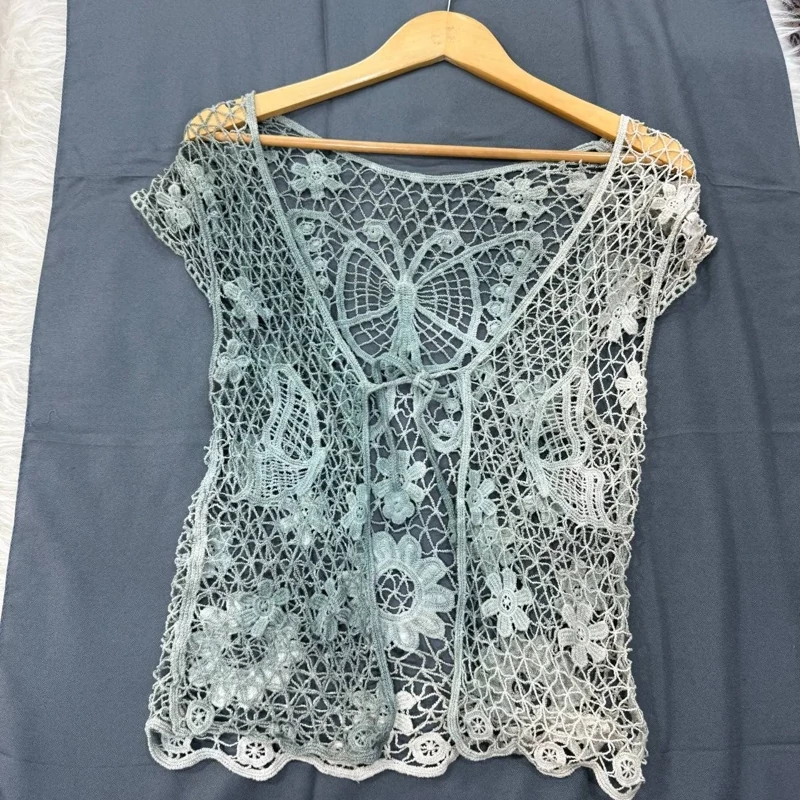 این رومایویی با طراحی قلاب بافی زیبا، جلوه ای خاص به استایل شما می بخشد. با فری سایز مناسب تا سایز 42، به راحتی بر تن می نشیند و راحتی بی نظیری را تجربه خواهید کرد.