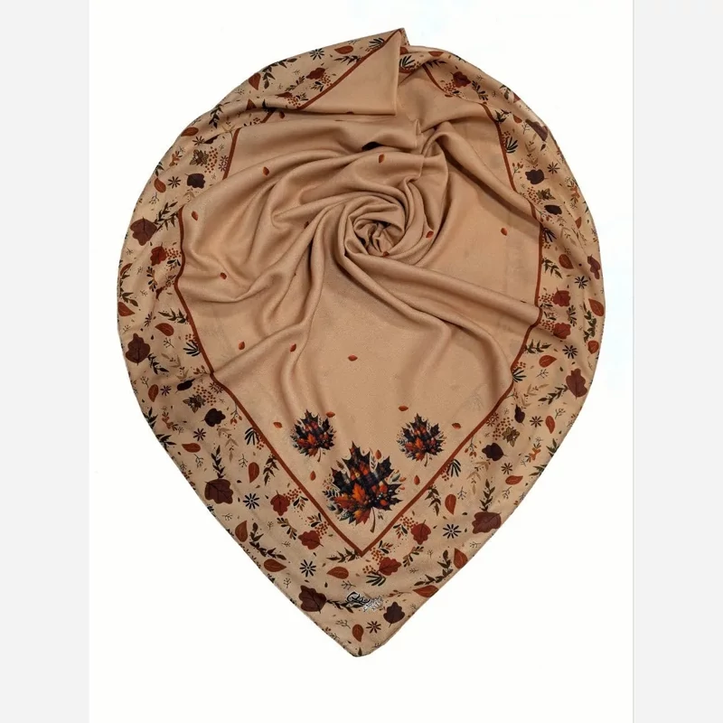 ## روسری نخی طرح پاییزه پانیذ قواره 140 کرم حاشیه دار