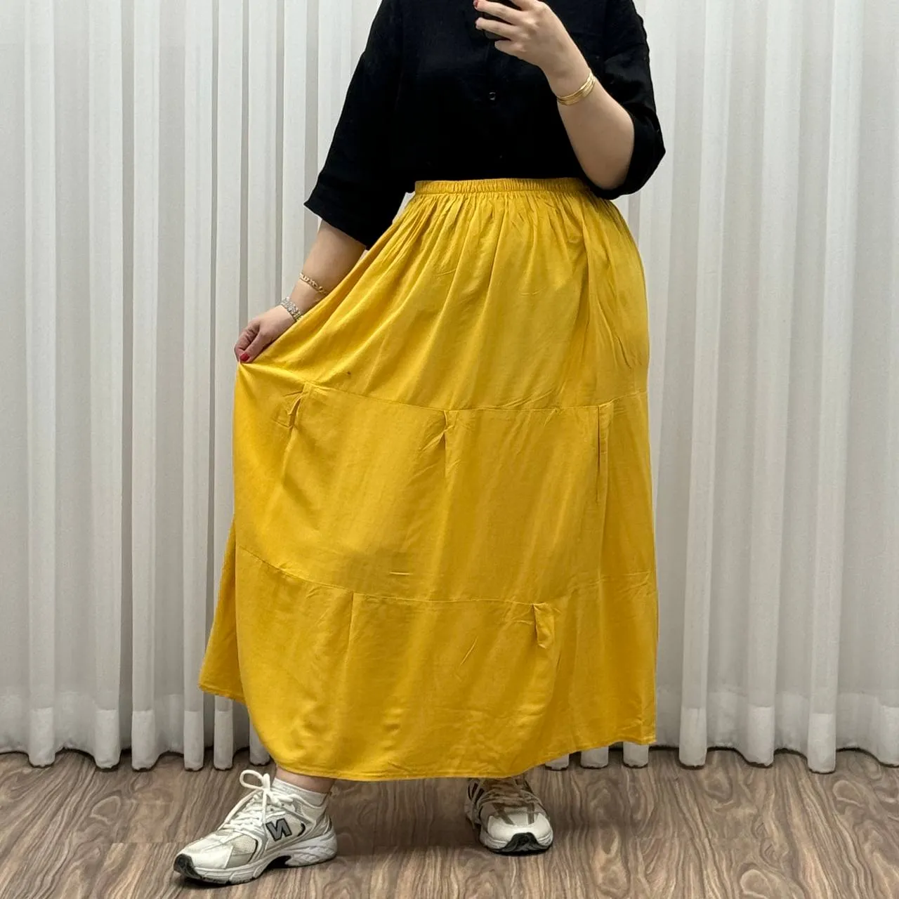 دامن نخی طبقهای ساده فری سایز زنانه تا سایز 50 تنخور شیک و راحت مناسب چهارفصل