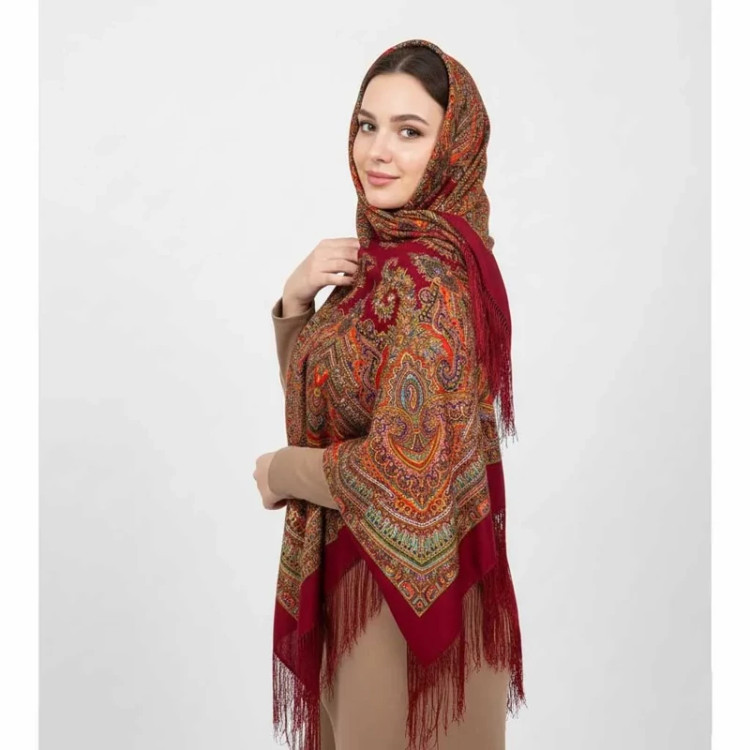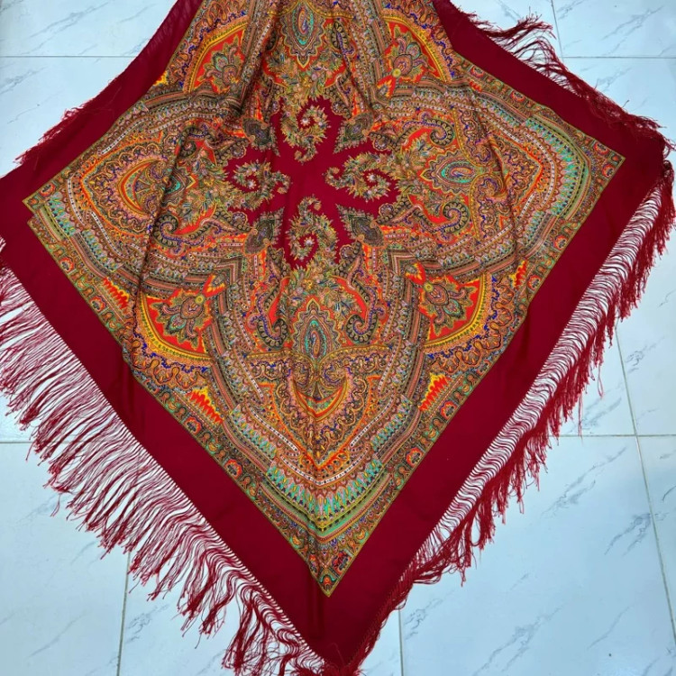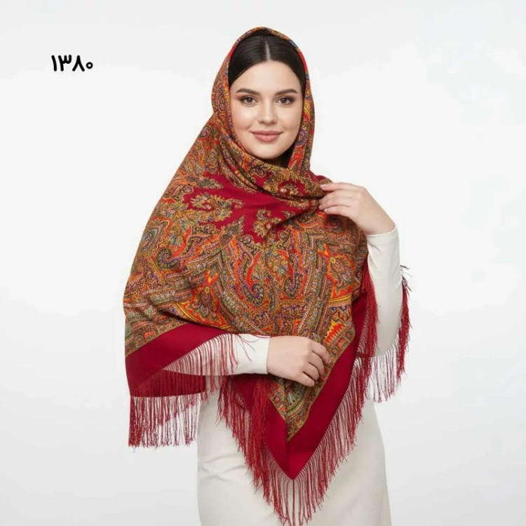 روسری ترکمن اصل ترکیه جنس نخی قواره بزرگ ریشه دستباف چهار فصل کد 1380