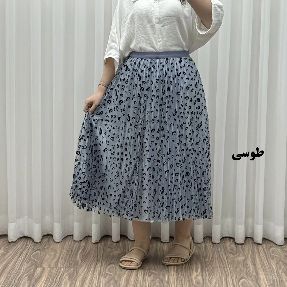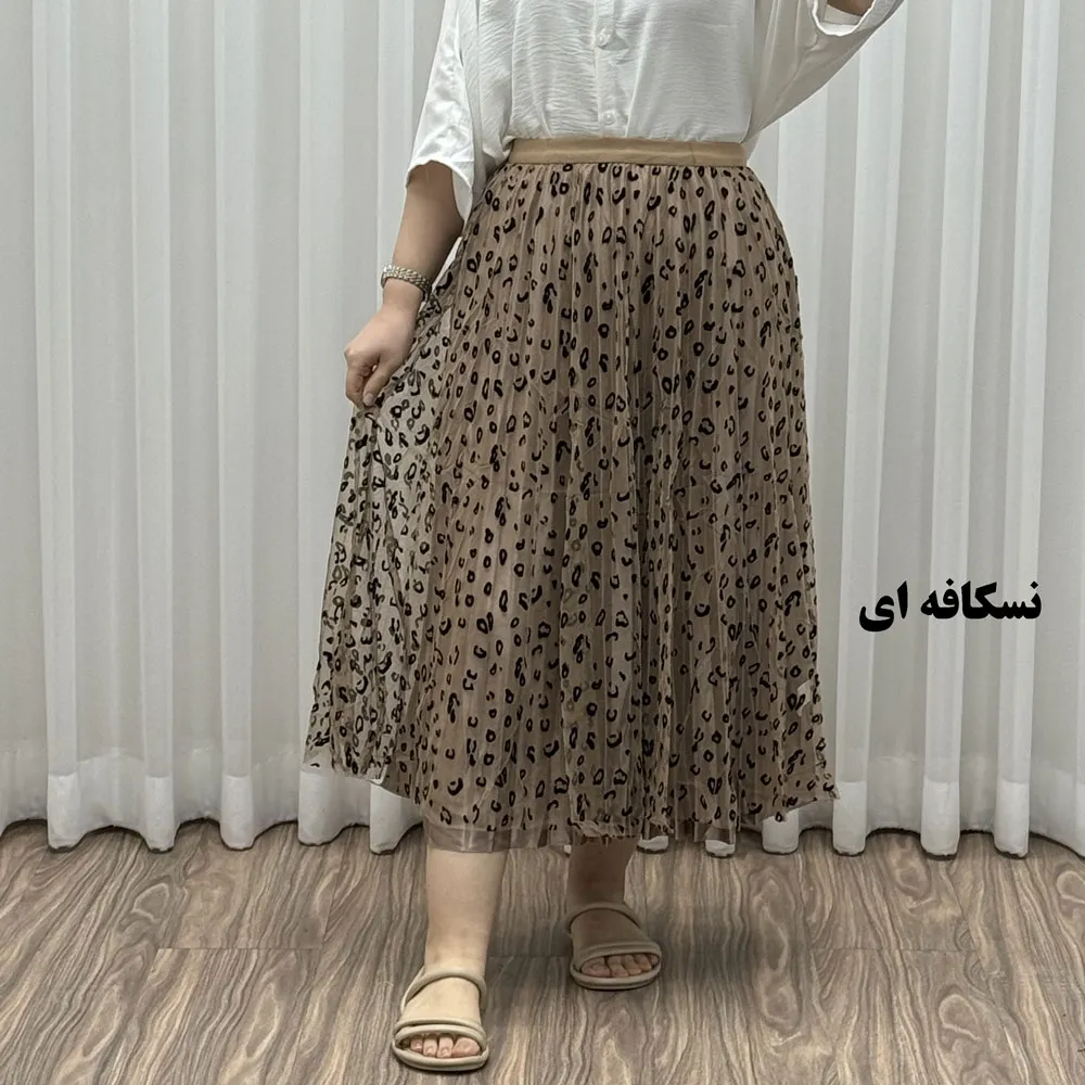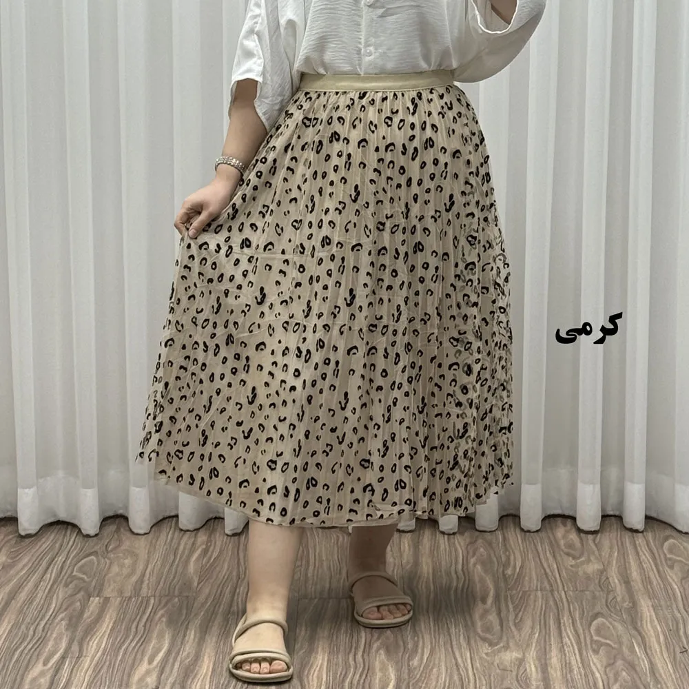 دامن گیپوری پلنگی فری سایز تا 46 قد 82 سانتیمتر زنانه شیک و راحت چهارفصل