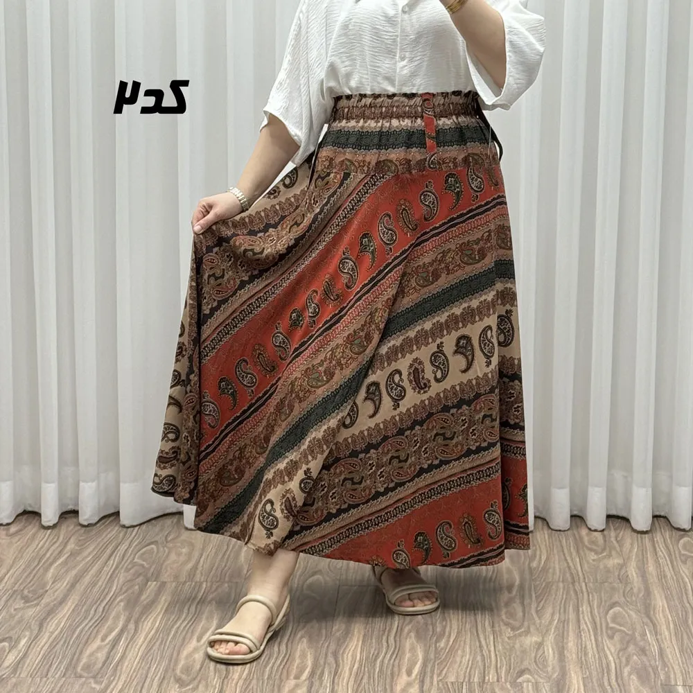 دامن وارداتی اندونزی مدل دنیا کد 1611 فری سایز تا 48 قد 95 سوپر نخ چهارفصل آستر دار بدون بدن نما