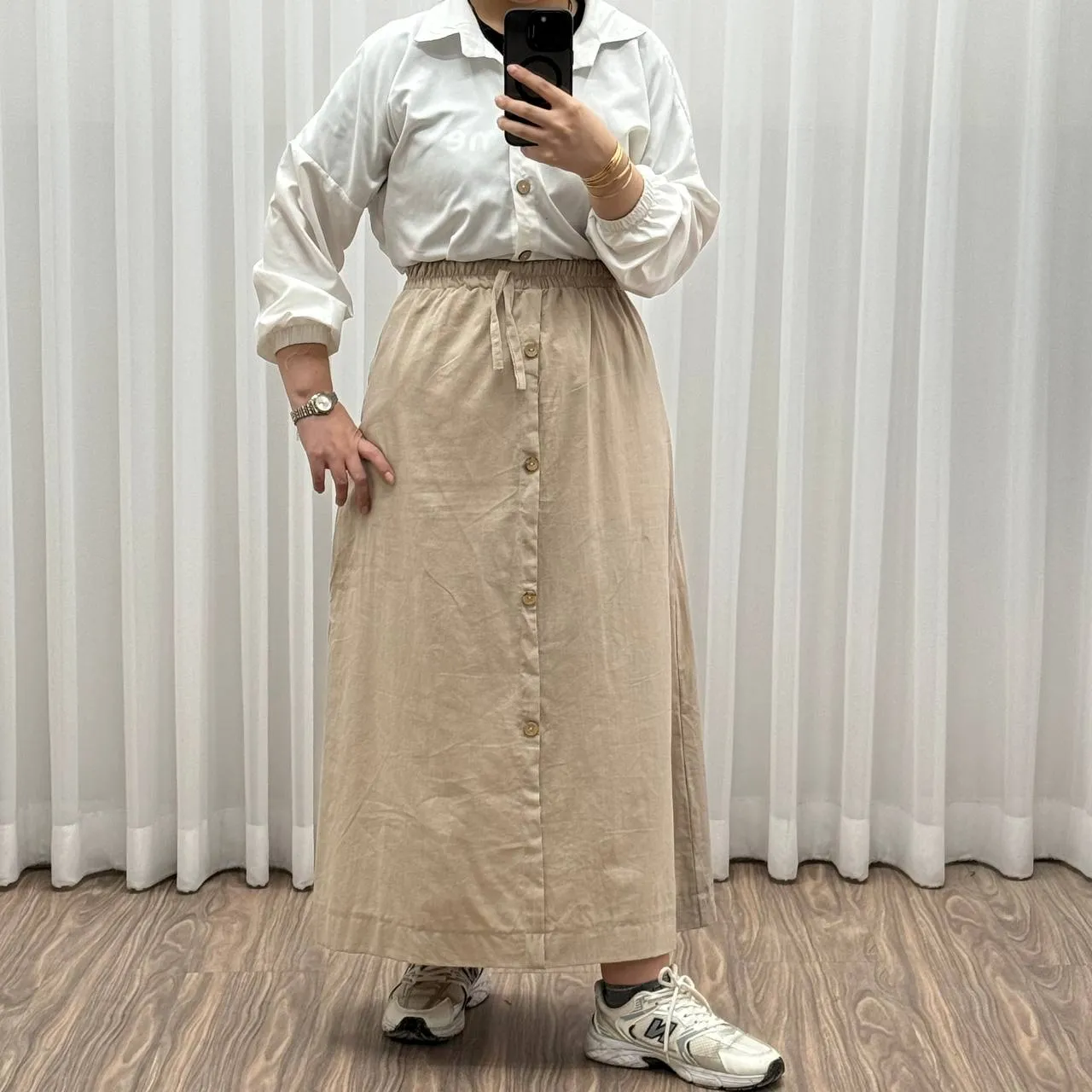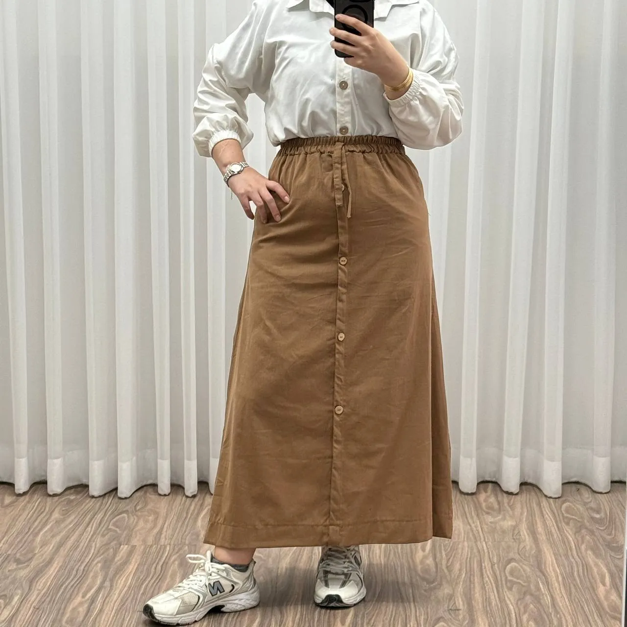 دامن لنین فری سایز شیک و راحت مناسب تا سایز 54 چهارفصل بدون آبرفت و رنگ رفت کمربند دار