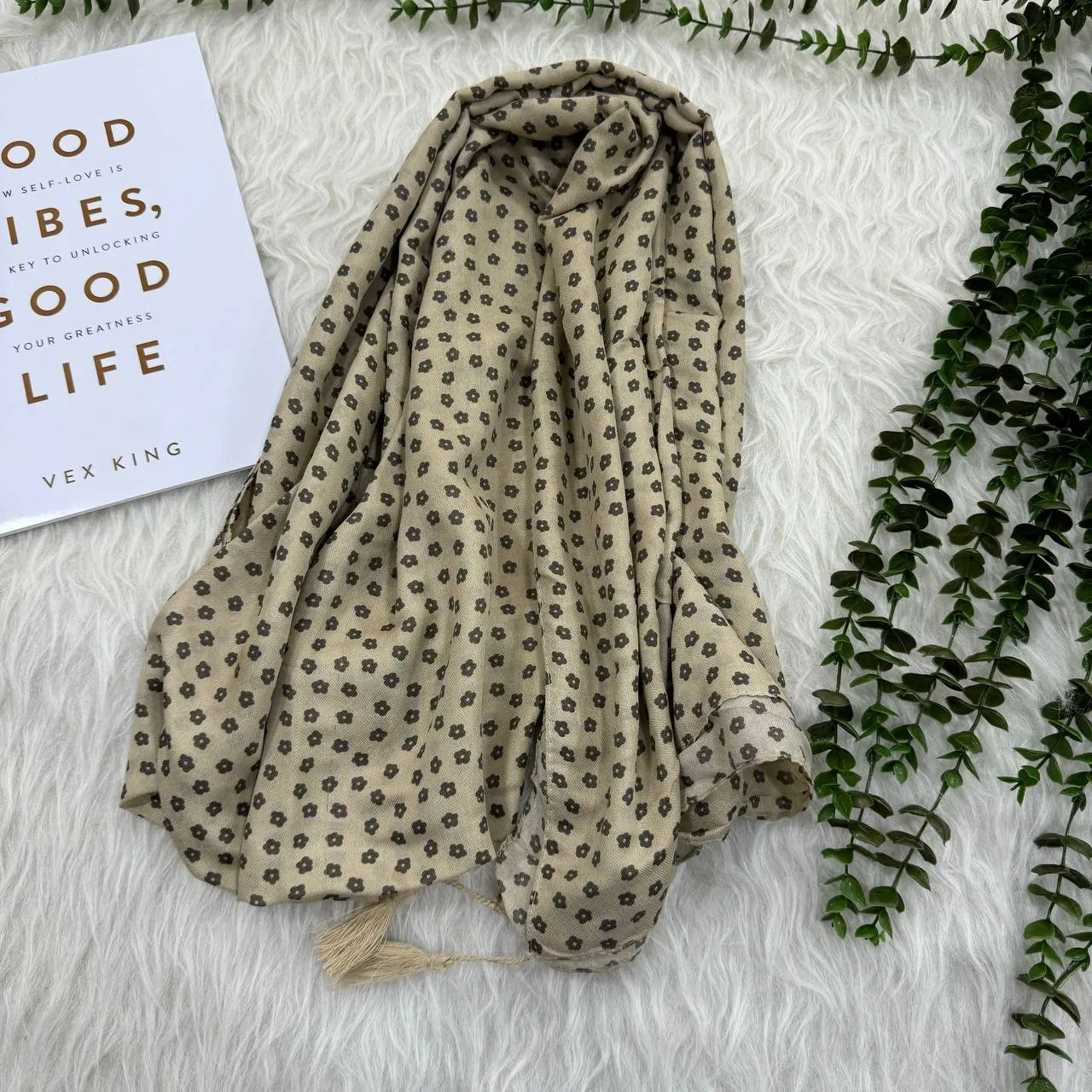 شال نخی گلدار سیآی اسکارف، انتخابی ایدهآل برای استایل روزمره شماست. 🌸 این شال با جنس نخی لطیف، حس راحتی بینظیری را به شما هدیه میدهد و برای استفاده روزمره، چه به عنوان پوشش بیرونی و چه دم دستی، فوقالعاده مناسب است.