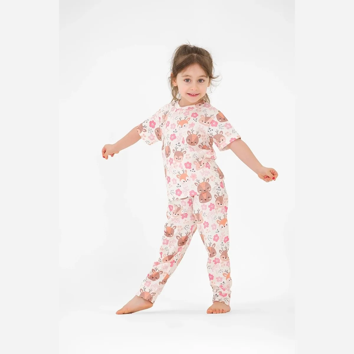 ست راحتی بهاره دخترانه با بلوز آستین کوتاه و شلوار، انتخابی ایدهآل برای کودکان 1 تا 8 سال. 🌸