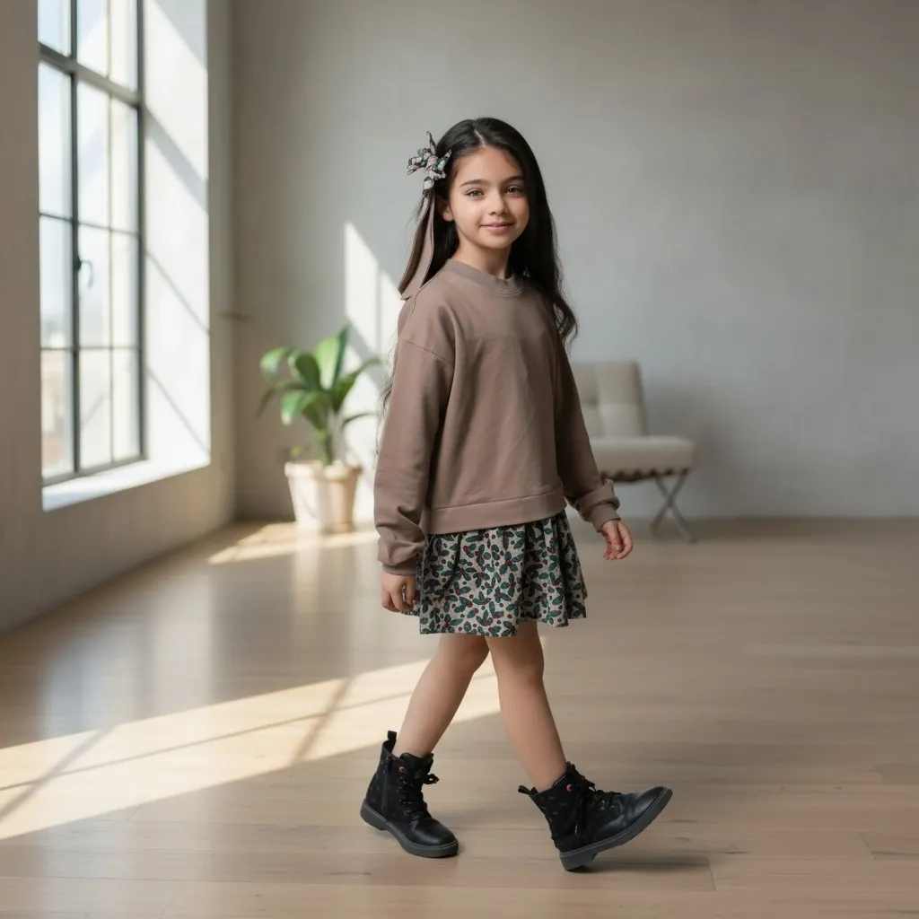 با این پیراهن زیبا، استایل شیک و خاصی برای دختر دلبندتان بسازید! این لباس ترکیبی بینظیر از راحتی و زیبایی است که برای مهمانیها و دورهمیهای پاییزی عالی است.