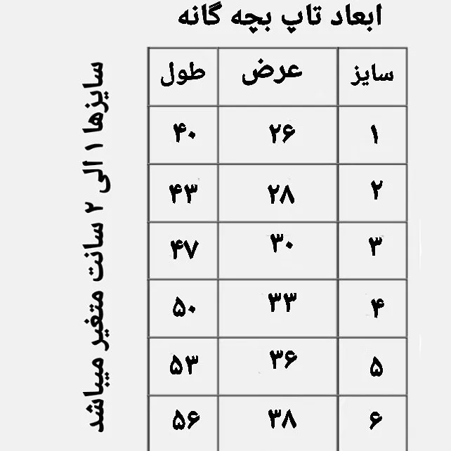 برای مشاهده دقیق سایزبندی، لطفاً به عکس دوم مراجعه فرمایید.